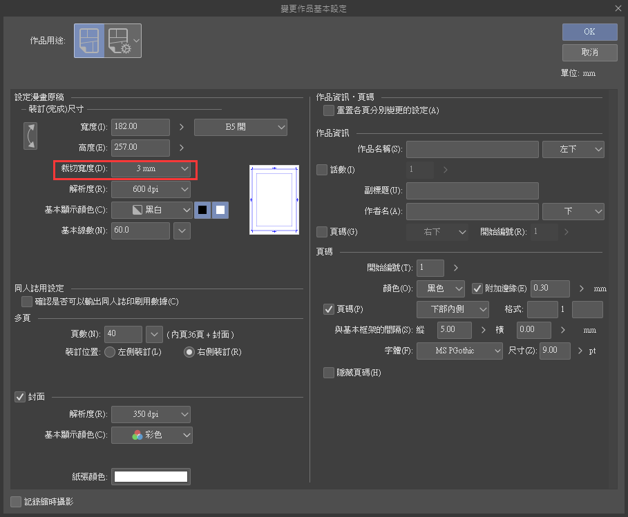 ①作品設定:裁切寬度設3mm(這3mm就是出血)